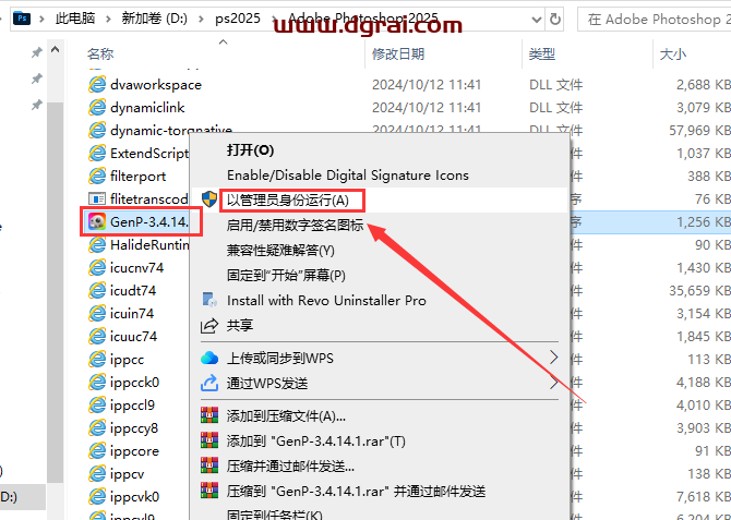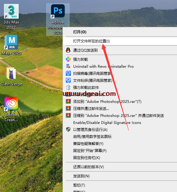 9、选择【Adobe Photoshop 2025】软件,鼠标右键点击“打开文件所在的位置”进入软件安装目录位置