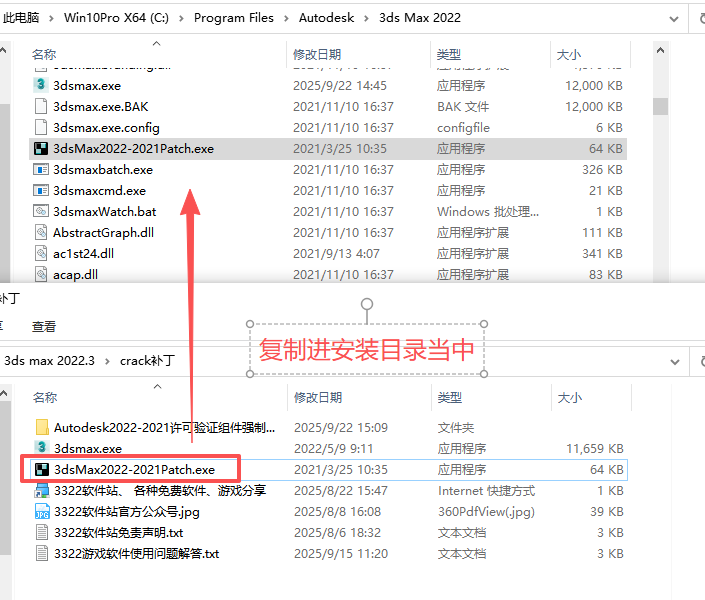 1、下载解压,得到autodesk 3dmax2022原程序和相对应补丁文件;